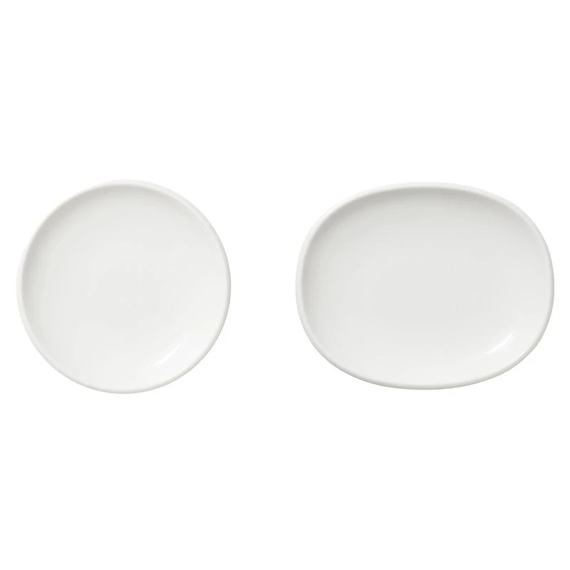 The small Raami plates by Iittala serve from breakfast to dinner. The ceramic plates are perfect for olives and other small servings and snacks, but can also be used, for example, for butter or olive oil and vinegar. The set includes one round plate and one oval plate.