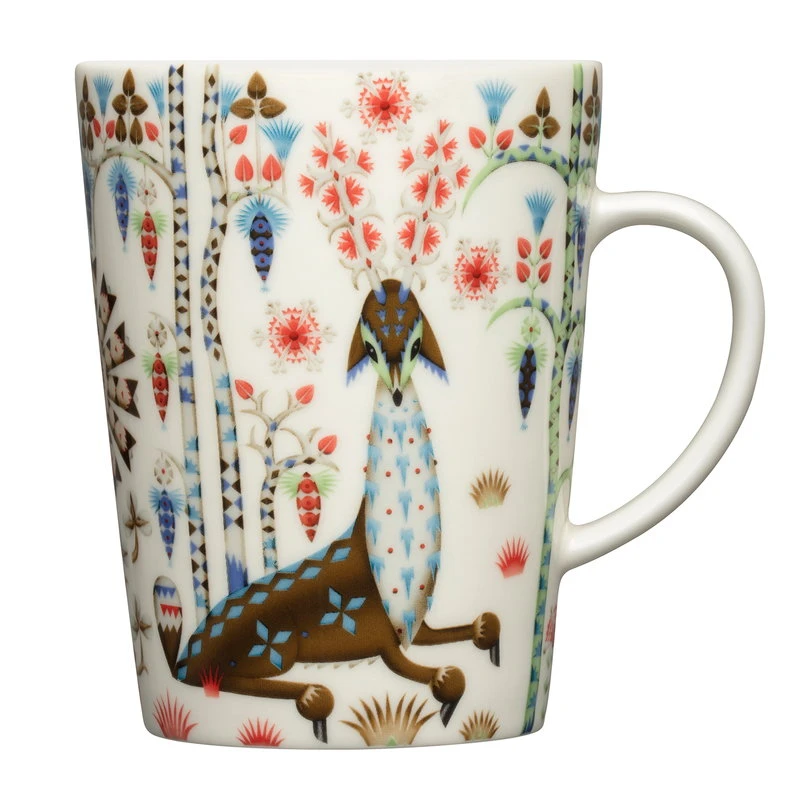 Iittala’s Taika Siimes mug is decorated with a beautiful pattern presenting a majestic deer, an adorable hedgehog and a handsome wood grouse. The large mug is perfect for all your favourite hot drinks.